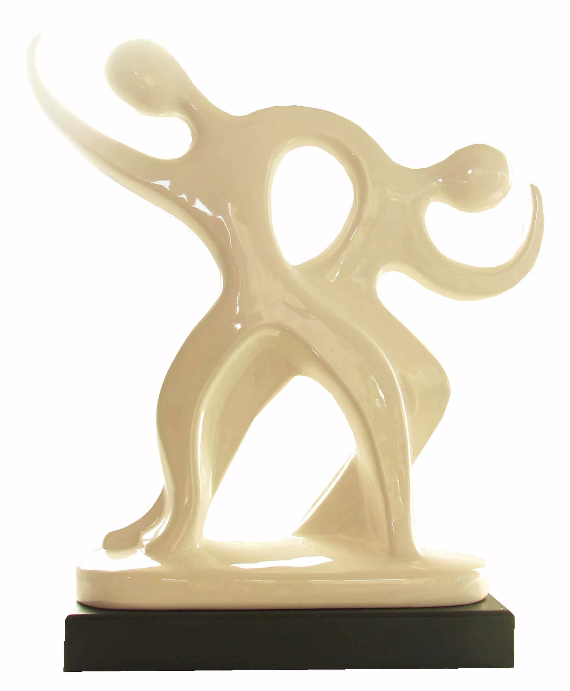 Keramický pár je bílé barvy. Podstavec je černý. Výška produktu je 30,48cm.