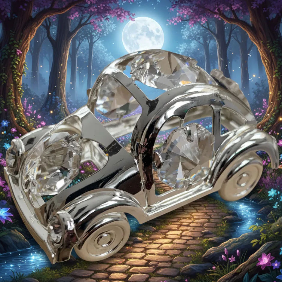 5 ks čirých rakouských křišťálů: Strategicky umístěné tak, aby dodaly autíčku luxusní charakter a výjimečný lom světla.