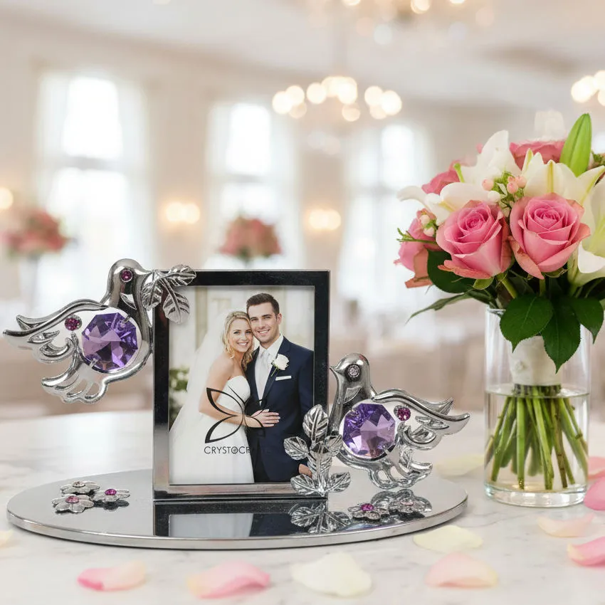 Postříbřený svatební fotorámeček s holubicemi a Swarovski krystaly