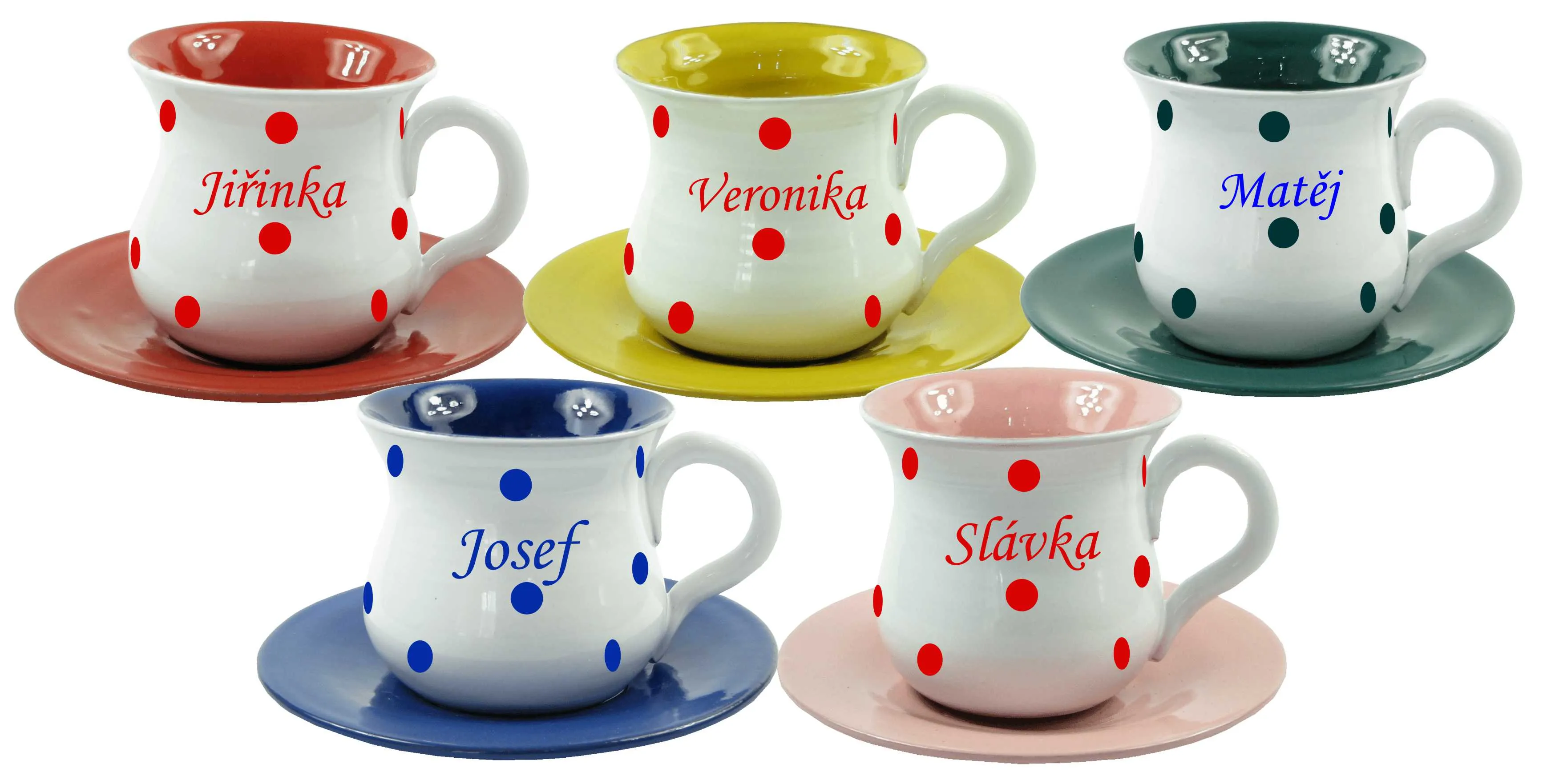 Šálek s podšálkem, tečkami a jménem na přání