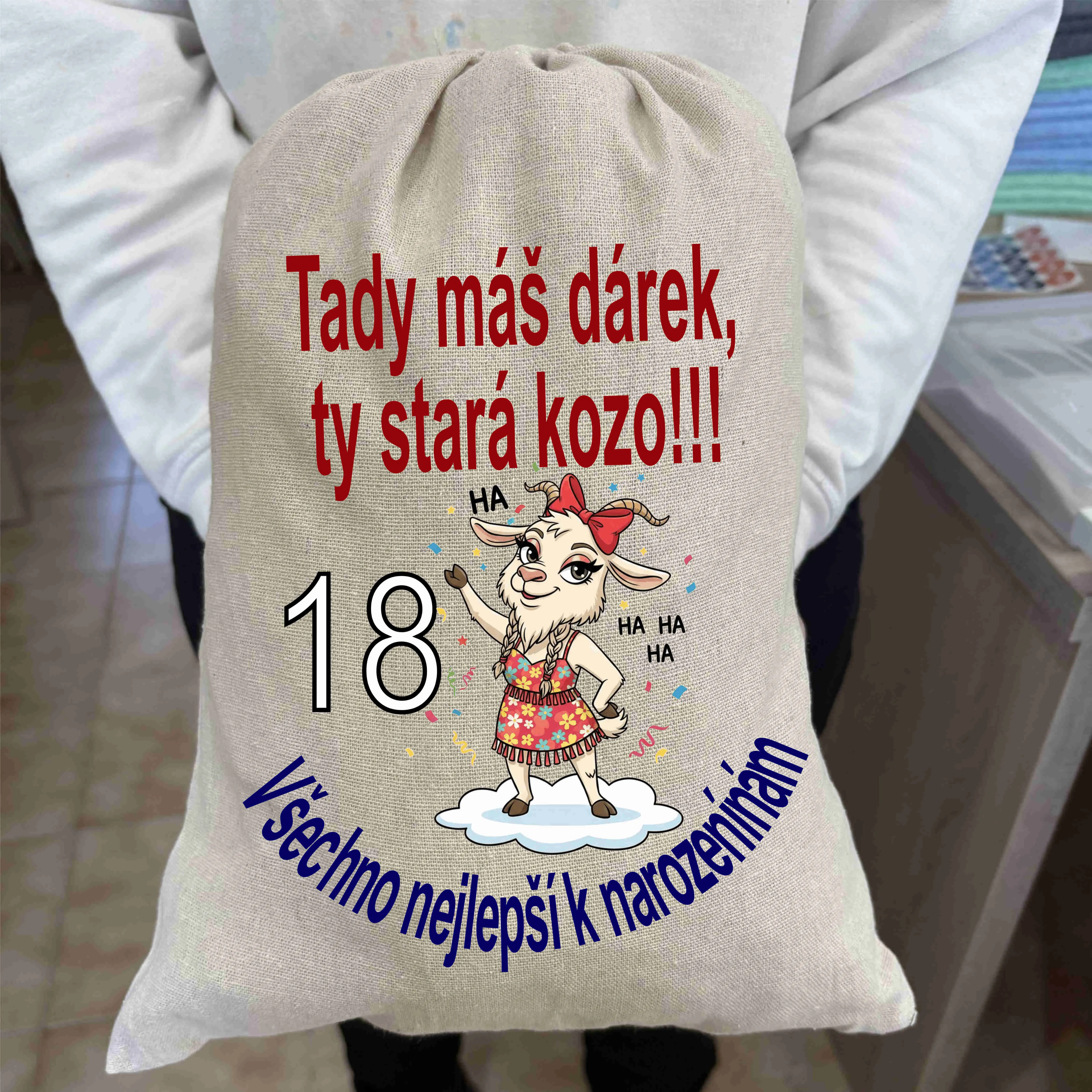 Hledáte ten nejvtipnější a nejodvážnější dárek pro ženu, která má smysl pro humor? Tento personalizovaný vak s motivem kozy je ideální volba na každé jubileum, svátek, nebo jen tak pro úsměv!